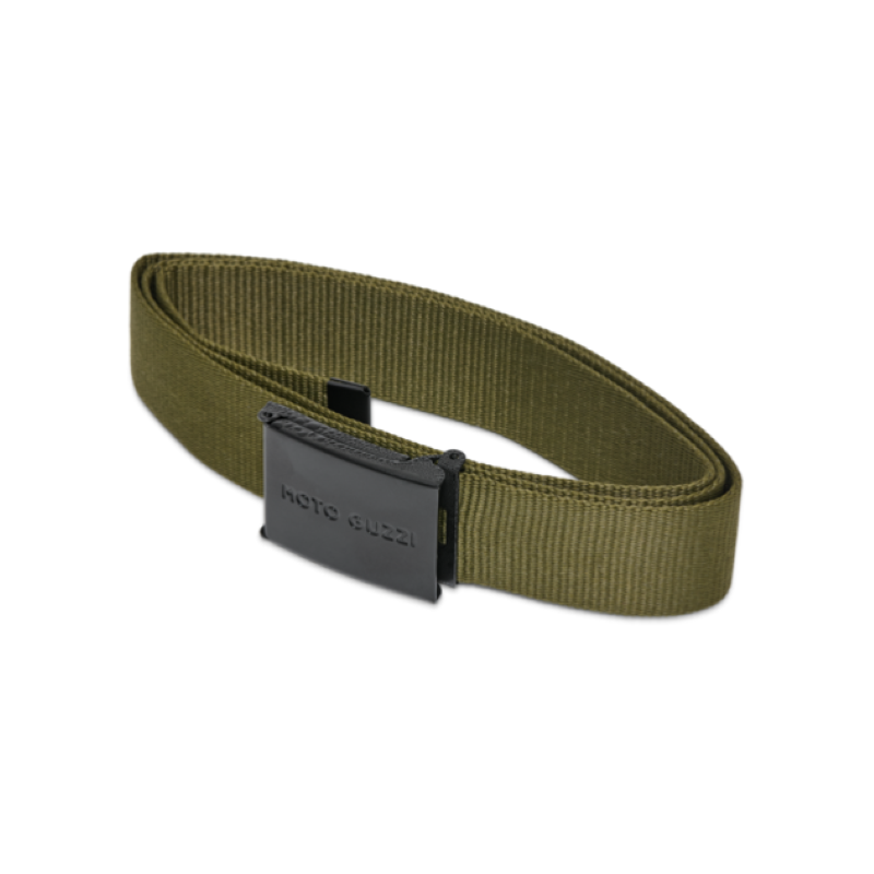 Cintura di ispirazione militare in poliestere di alta qualità con chiusura resistente in metallo.