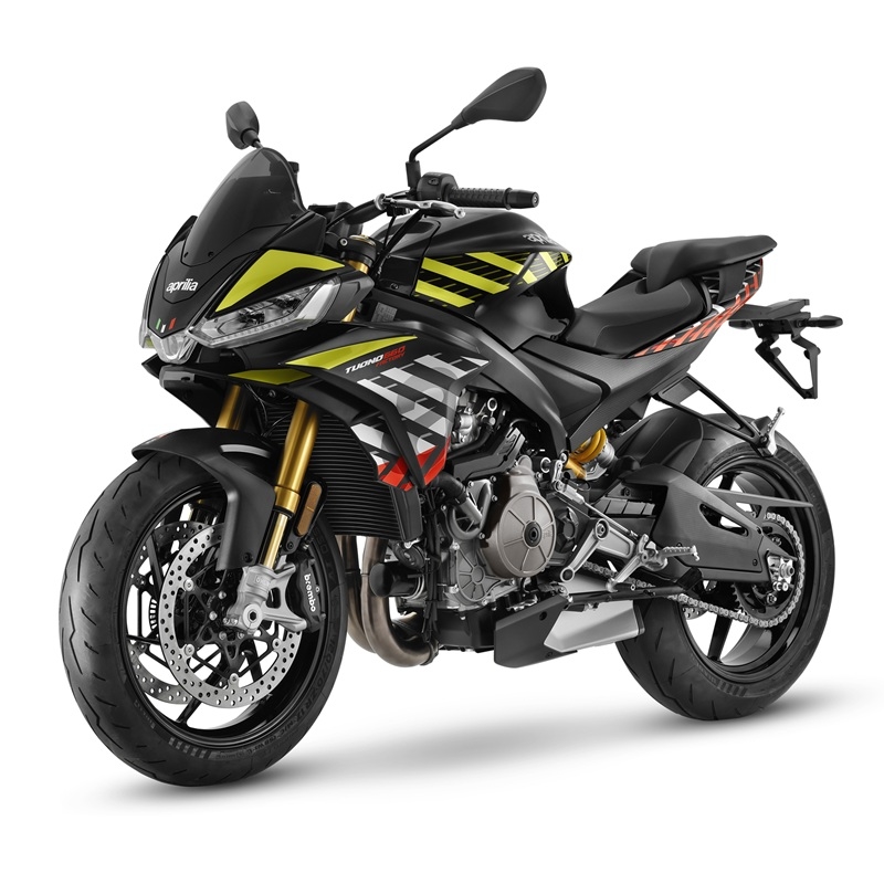 Le nuove grafiche hanno proprio l’obiettivo di esaltare il design delle superfici delle due Aprilia carenate e delle rispettive versioni Tuono: un vero e proprio omaggio alla cultura degli studi aerodinamici di Noale. Sia la grafica Shakedown Indigo, delle Aprilia V4, sia la grafica Shakedown Yellow delle due Aprilia 660 propongono due punti di vista differenti: il primo è il tema delle frecce che percorrono le fiancate, simulando i flussi di aria calda che vengono estratti dal motore e si perdono verso la coda; il secondo tema è illustrato tramite delle linee, che richiamano invece gli indicatori di flussi di aria utilizzati nelle prove in galleria del vento o nelle simulazioni CFD (Computational Fluid Dynamics). L’intersecarsi di queste geometrie di differente forma e spessore, assieme alle finiture lucide e opache, crea illusioni ottiche fino a tre livelli di profondità, complessità mai vista fino ad ora su una moto di serie.