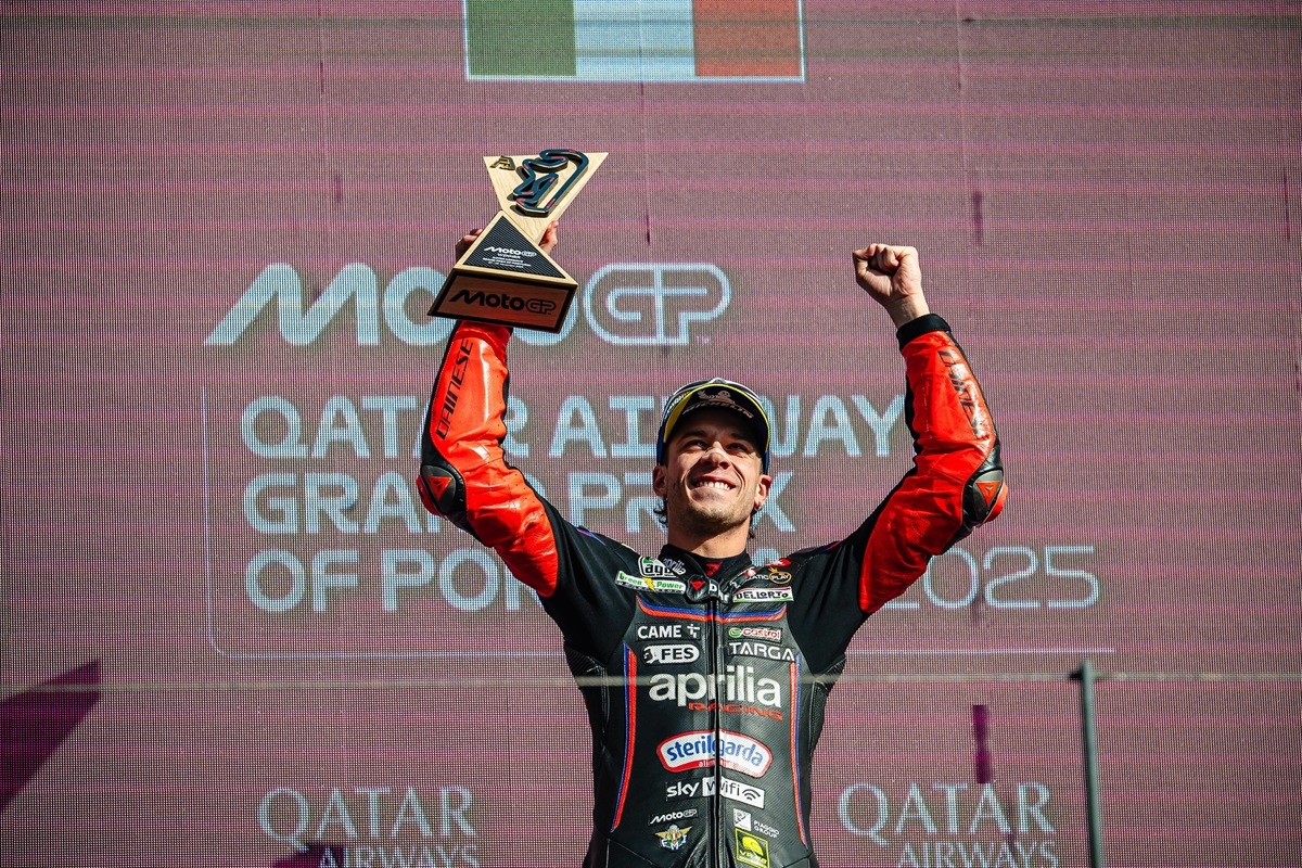 Il weekend di Aprilia Racing all’Autódromo Internacional do Algarve si è concluso con una straordinaria vittoria al termine di una gara semplicemente perfetta. Partito dalla pole position, Marco Bezzecchi ha dominato dal primo all’ultimo giro, imponendo un passo gara inavvicinabile e tagliando il traguardo con oltre due secondi di vantaggio sul primo inseguitore. Una prestazione di assoluta superiorità che consolida ulteriormente la terza posizione di Marco Bezzecchi nel mondiale piloti con 323 punti e 35 di vantaggio.