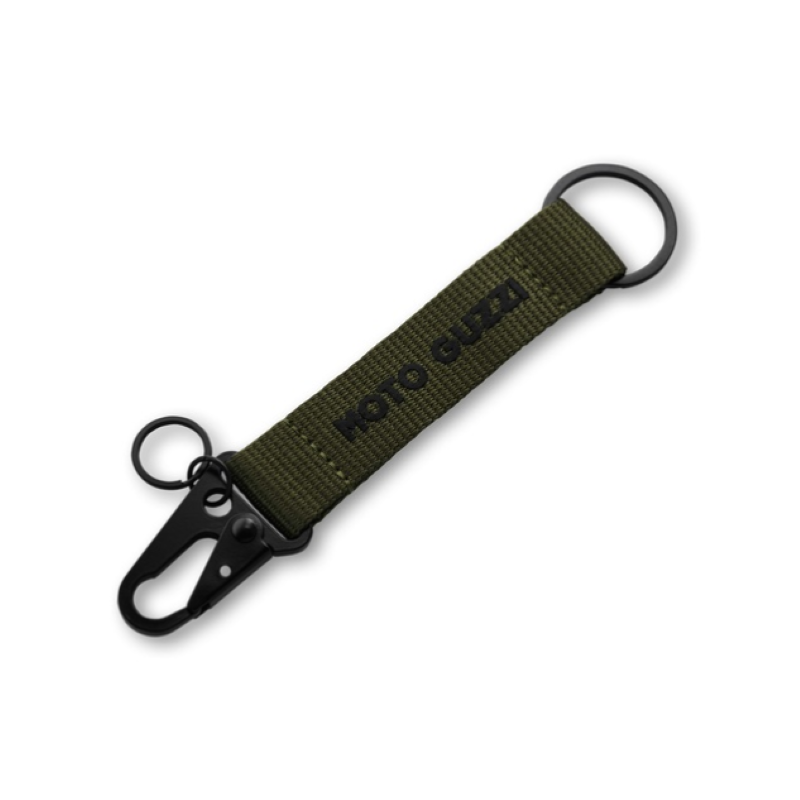Portachiavi con anello e moschettone in metallo di ispirazione outdoor, caratterizzato da una raffinata stampa gommata su un lato. La finitura opaca conferisce un tocco di classe e resistenza. Un accessorio versatile e moderno, ideale per gli appassionati di stile e praticità.