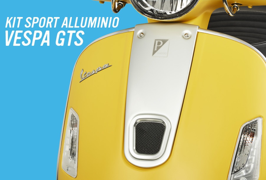 Pensato per chi ama distinguersi negli spostamenti di tutti i giorni, il kit sportivo valorizza ulteriormente lo stile GTS e si compone di elementi dal design raffinato come il cravattino per lo scudo anteriore, il cupolino e la cover per l'attacco portapacchi posteriore in alluminio, e la cresta parafango, gli specchi retrovisori, sempre in alluminio e ricavati dal pieno.