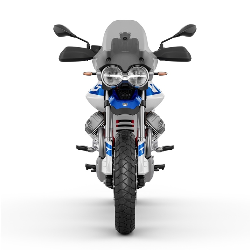 L’impronta stradista è sottolineata anche dalla presenza del parafango basso sulla ruota anteriore e dalle nuovissime ed evocative tinte Verde Legnano e Rosso Monza, richiami espliciti alla tradizione più sportiva di Moto Guzzi.