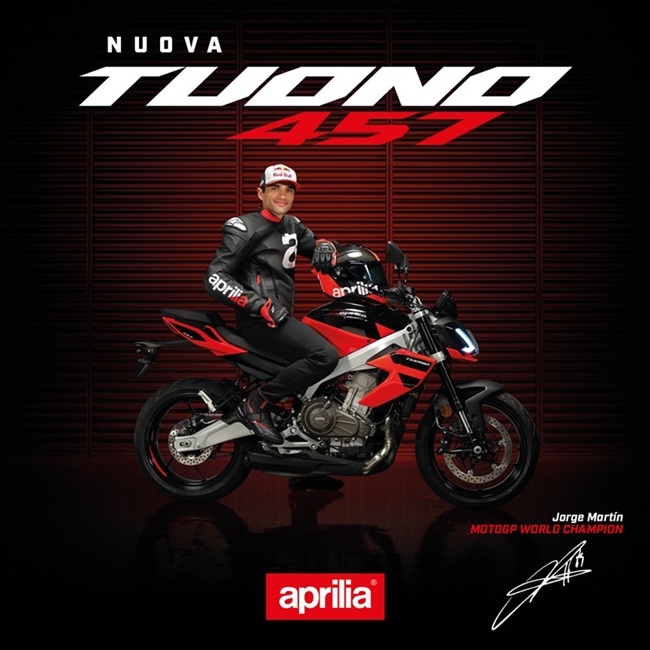 **Annuncio pubblicitario con finalità promozionale. Esempio di finanziamento: APRILIA Tuono 457 Abs Prezzo di listino €6.599. Prezzo promo €6.599, anticipo €3.299,50; importo totale del credito €2.949,50, da restituire in 23 rate mensili ognuna di €0, ed un VFG pari alla maxi rata finale di €3.299,50, importo totale dovuto dal consumatore €3.382,74. TAN 0,00% (tasso fisso) - TAEG 6,04% (tasso fisso). Spese comprese nel costo totale del credito: interessi €0, istruttoria €350, incasso rata €3,00 cad. a  mezzo SDD, produzione e invio lettera conferma contratto €1; comunicazione periodica annuale €1 cad.; imposta sostitutiva (o imposta di bollo): €8,24. Offerta valida presso i dealers aderenti, fino al 30/11/2025. Condizioni contrattuali ed economiche in "Informazioni Europee di Base sul Credito ai Consumatori" presso la rete di vendita e sul sito www.santanderconsumer.it, sez. Trasparenza. Salvo approvazione di Sant