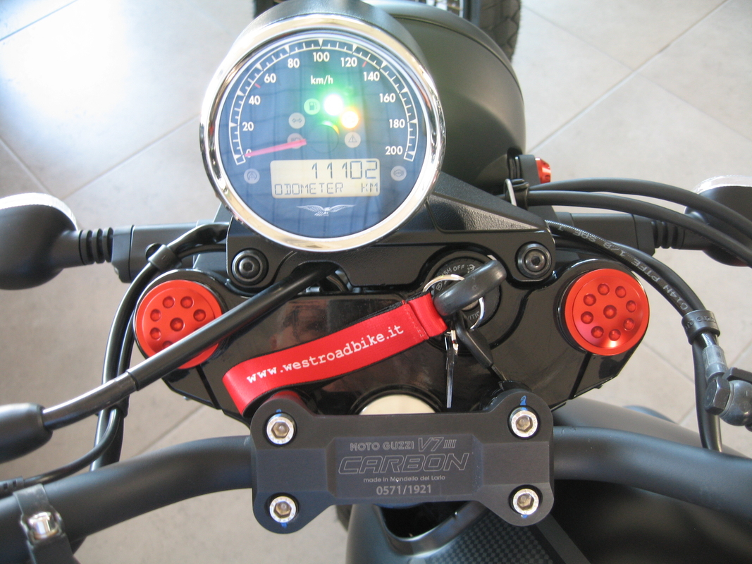 VEICOLO COMPLETO DI MARMITTE OMOLOGATE MISTRAL, OLTRE A QUELLE ORIGINALI, BORSE LATERALI SEMIRIGIDE IN TESSUTO, SPECCHI DA MANUBRIO E PARTICOLARI IN ERGAL ROSSO.