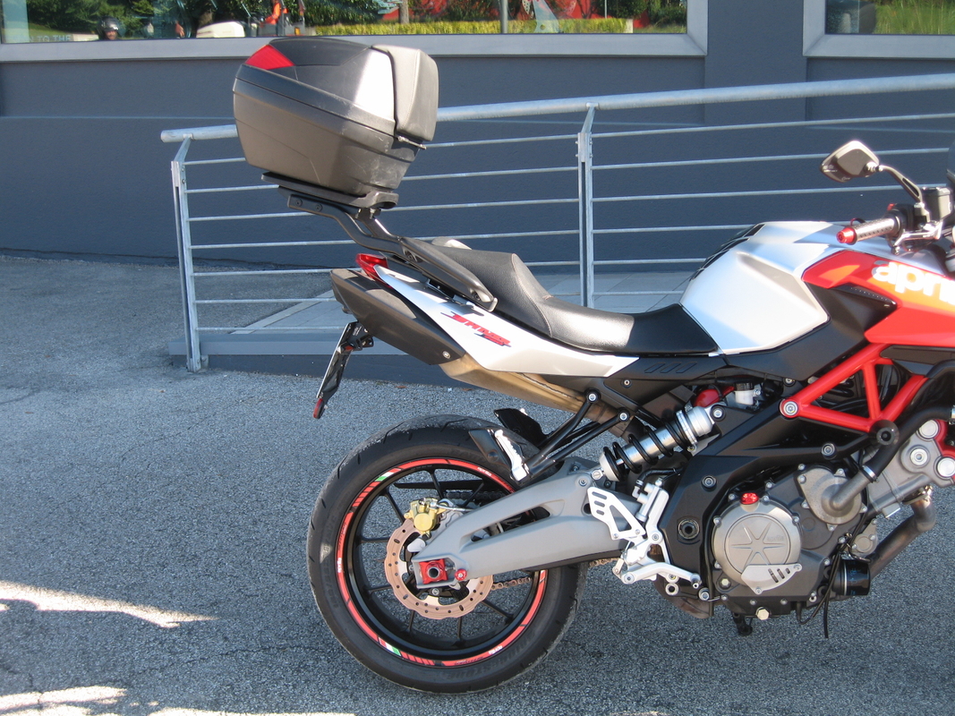 VEICOLO COMPLETO DI BAULE POSTERIORE, CUPOLINO FUME', SPECCHI IN ERGAL, TAMPONI PARACADUTA E PARTICOLARI IN ERGAL ANODIZZATI ROSSI.